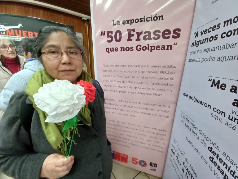 Por su parte, Rodolfo Guerrero, encargado del departamento PRAIS del Servicio de Salud Los Ríos agregó que “La muestra está compuesta de 14 bastidores con frases impresas relatadas por de sobrevivientes de la dictadura civil militar en contexto terapéutico. Las frases, debidamente autorizadas para ser divulgadas, buscan hacer visible la profundidad del daño y hacer posible un ejercicio de memoria en el contexto de la conmemoración de los 50 años del golpe militar”.