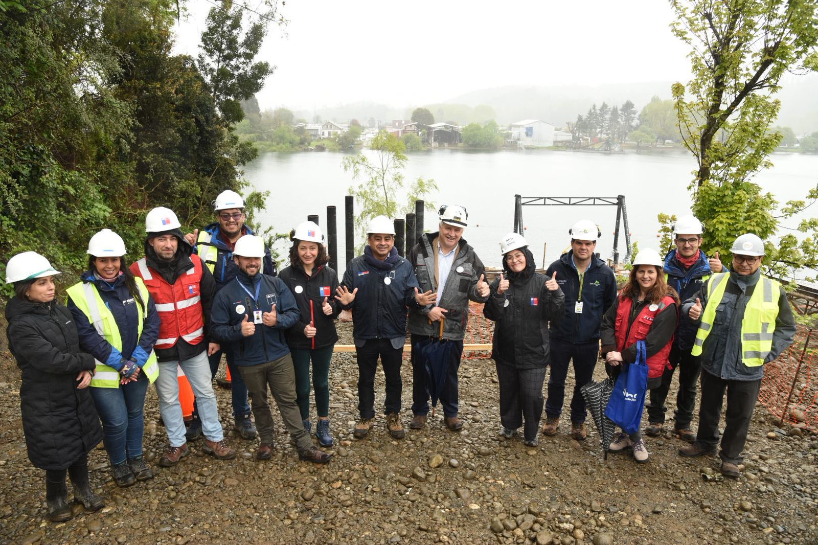 La Cámara Chilena de la Construcción sede Valdivia realizó el lanzamiento de su XI Semana de la Seguridad y Salud Laboral con una visita al Embarcadero Matta, en Las Ánimas. Los trabajadores de Constructora Harcha tuvieron la oportunidad de compartir con representantes del gremio, Mutual de Seguridad y autoridades regionales. A ellos, les hablaron sobre sus buenas prácticas en seguridad laboral y también los desafíos que han enfrentado en la ejecución de la obra que actualmente bordea el 32 por ciento de avance y que busca potenciar el desarrollo turístico de la capital de la región de Los Ríos protegiendo el borde natural y fluvial.