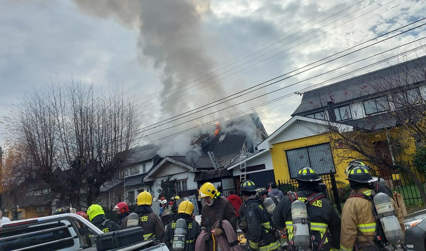 A la emergencia llegaron diversas compañías de Bomberos de Valdivia para evitar la propagación del fuego, debido a que al costado derecho existe un galpón donde funciona la empresa Gama Mobility y más a la derecha un nuevo edificio de departamentos.